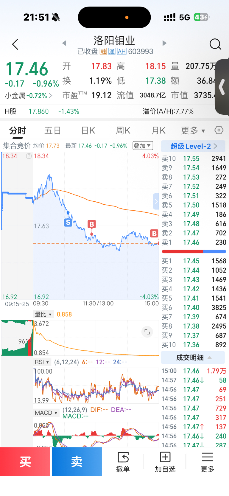 $洛阳钼业(SH603993)$ 明天喝口汤
