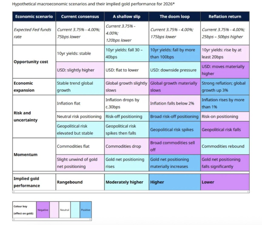 图表:2026年假设宏观经济情景及其对应的黄金表现预期(来源:世界黄金协会报告)
