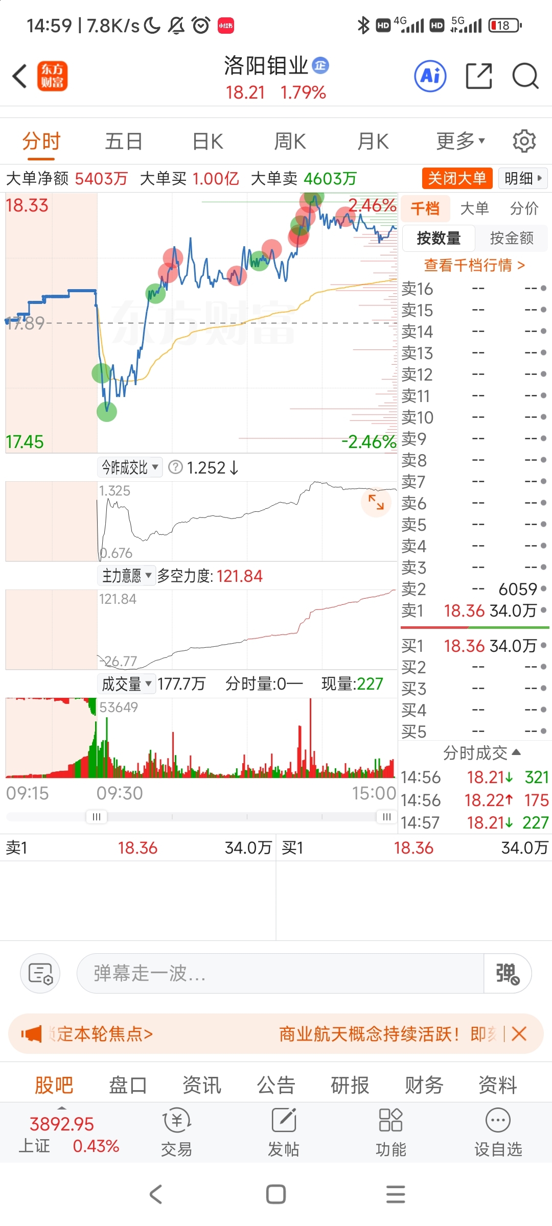 $洛阳钼业(SH603993)$ 看了这么多评论,各位傻(略去一个字),别研究最后三分钟的事了,今天尾盘我在这,富时的锅,周一涨还是跌看命,我全仓+实盘,周一情况看周一,别特么瞎想。