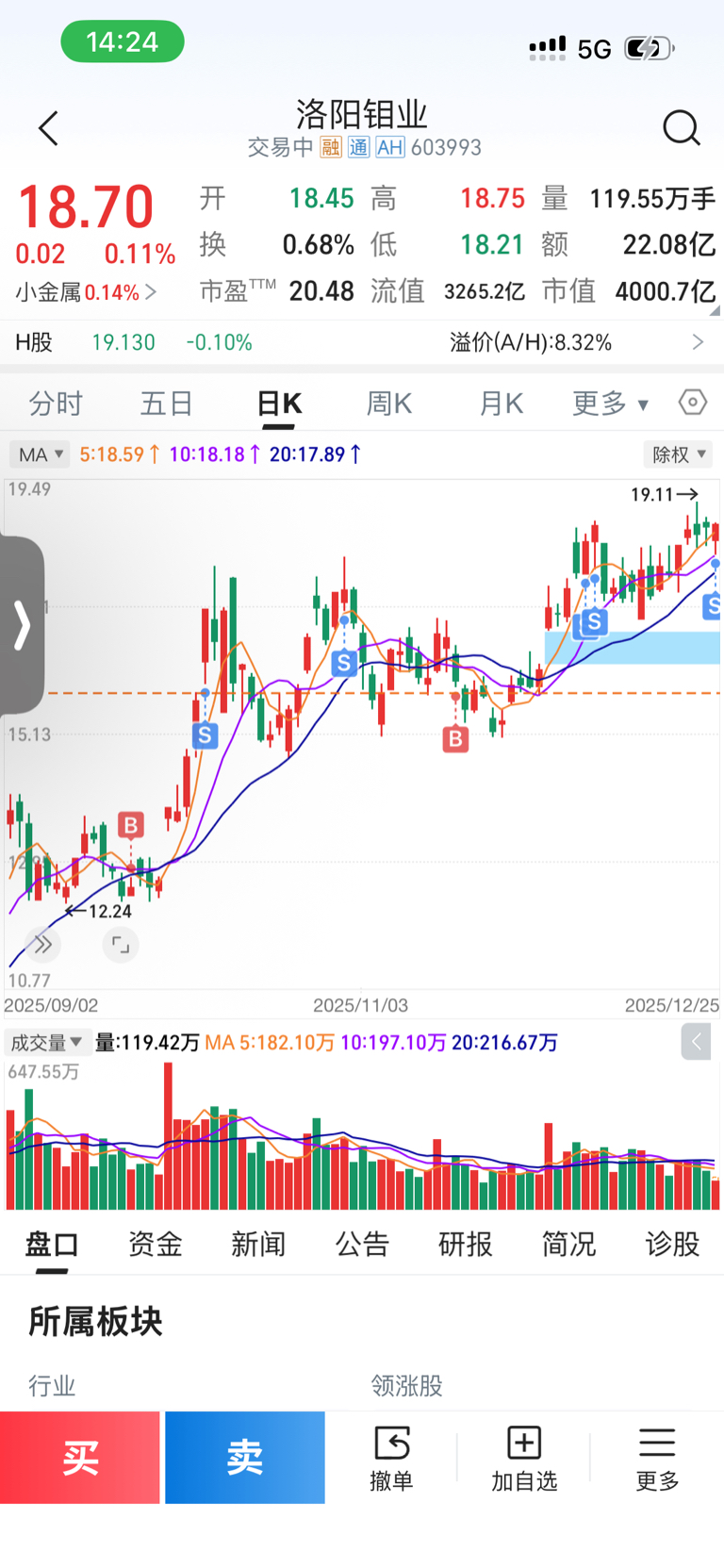 $洛阳钼业(SH603993)$ 暂时告一段落了