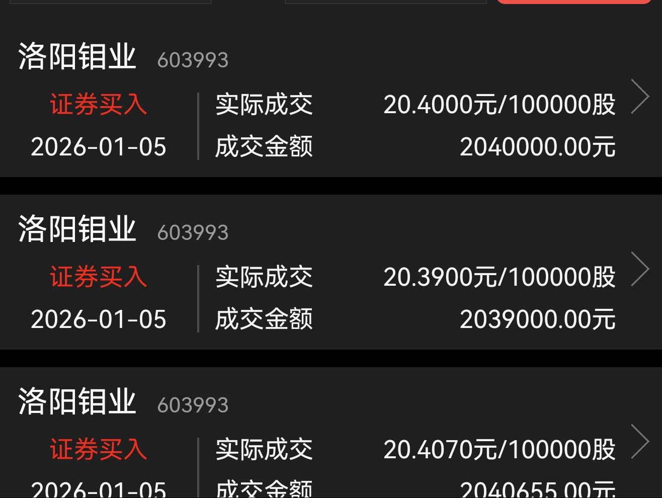 $洛阳钼业(SH603993)$ 昨天刚买的可以食肉了