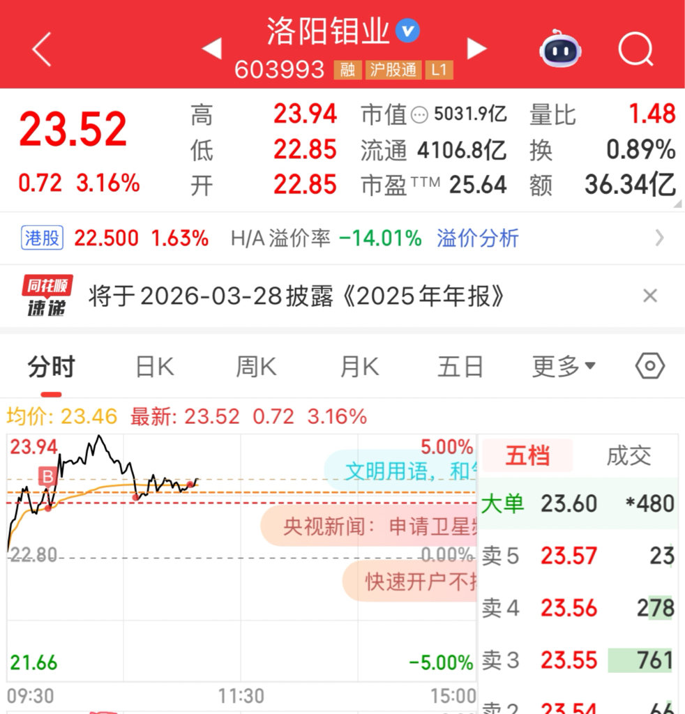 $洛阳钼业(SH603993)$ 今天刚上车,你可以跳水了