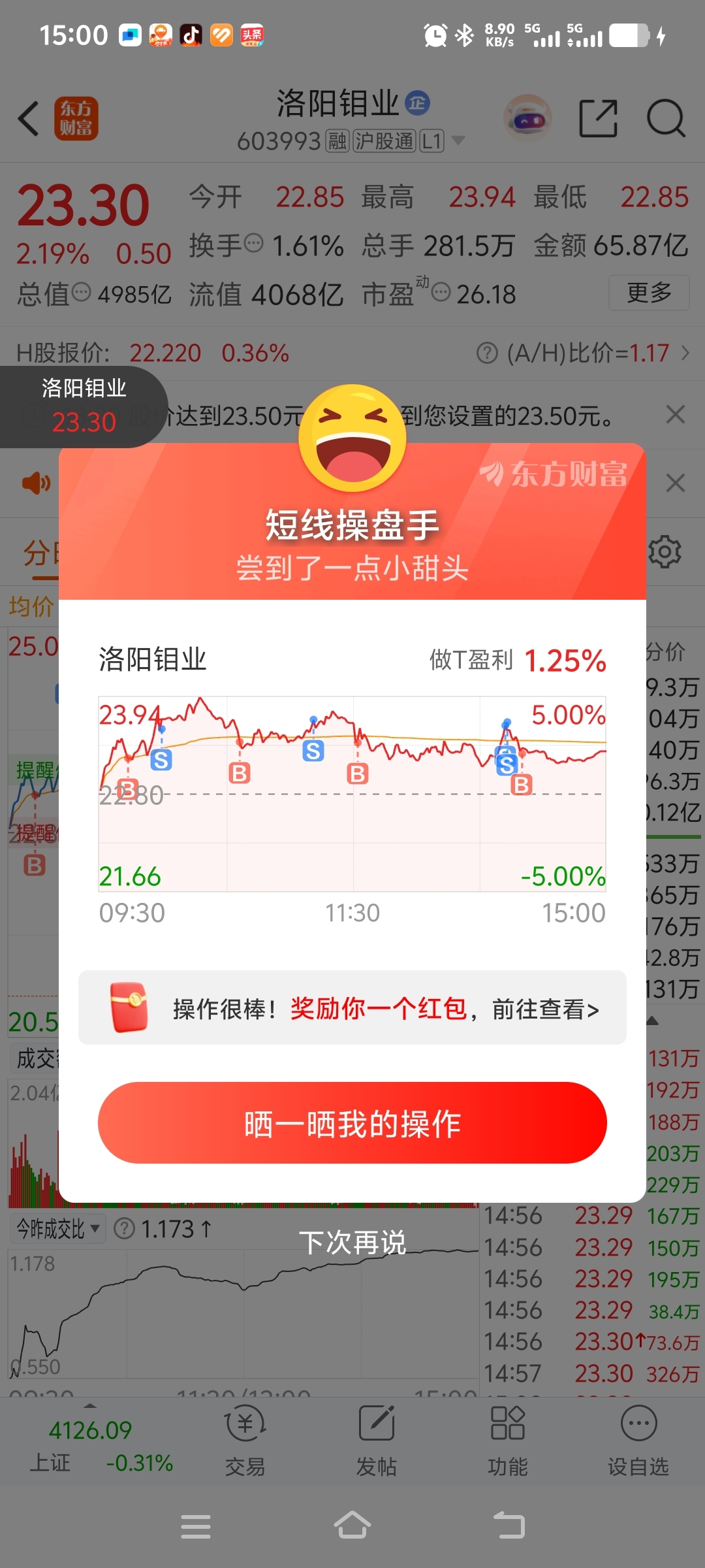 $洛阳钼业(SH603993)$ #强势机会# 收绿色。