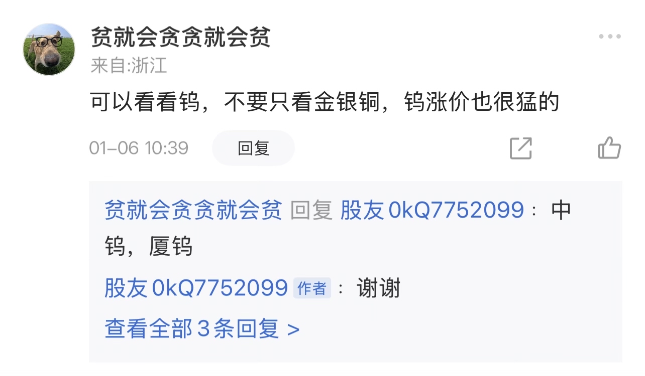 $洛阳钼业(SH603993)$ 9月份满仓白银12月卖完,12月半仓航天1月清完,1月推荐别人买钨如果有买那肯定是赚到了,现在钨又进入战略物资后续还要涨。选择螺母是因为它会是第二个紫金,矿产资源丰富,金铜比我坚信还是要修复的,目前的金铜比是10年均值最低的一年相差了1倍,目标是6月到40,下半年再进入原油