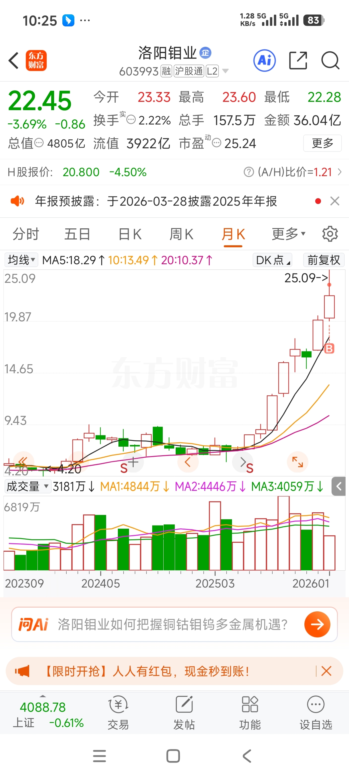 $洛阳钼业(SH603993)$ 每次都是最高点进场