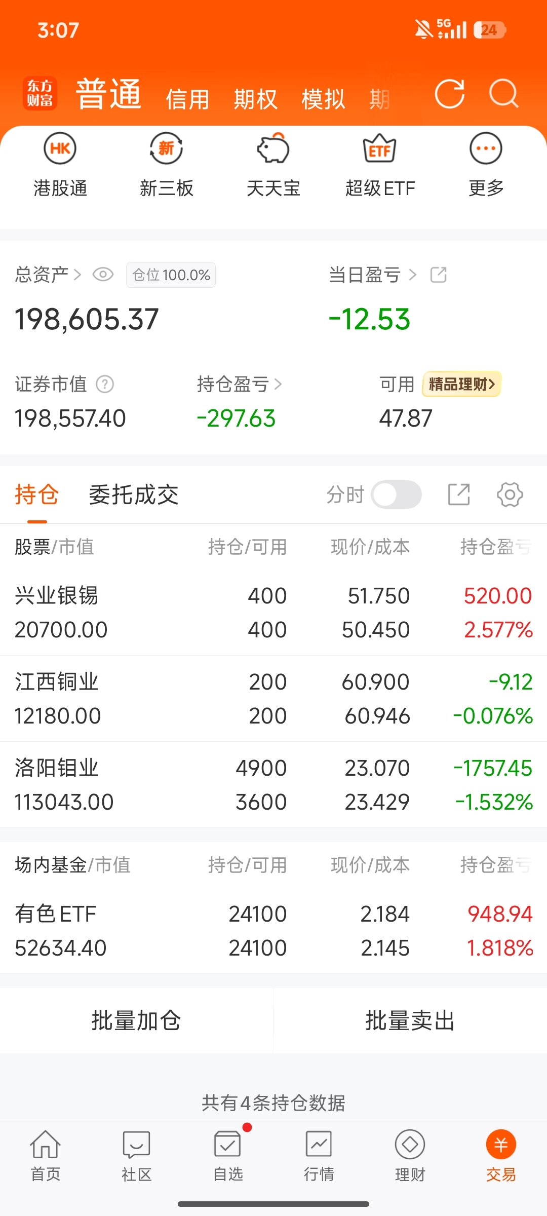 $洛阳钼业(SH603993)$ 20万今天亏12 块钱是什么水平