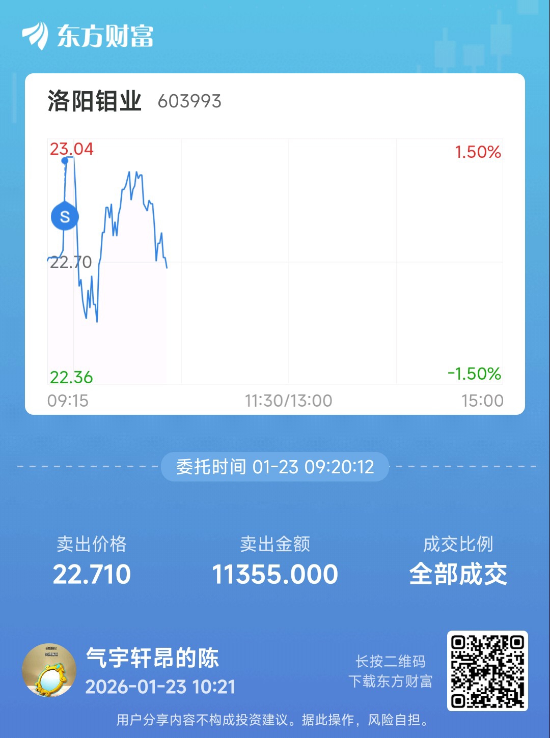$洛阳钼业(SH603993)$ 祝各位发财,集合竞价居然是今日最高价