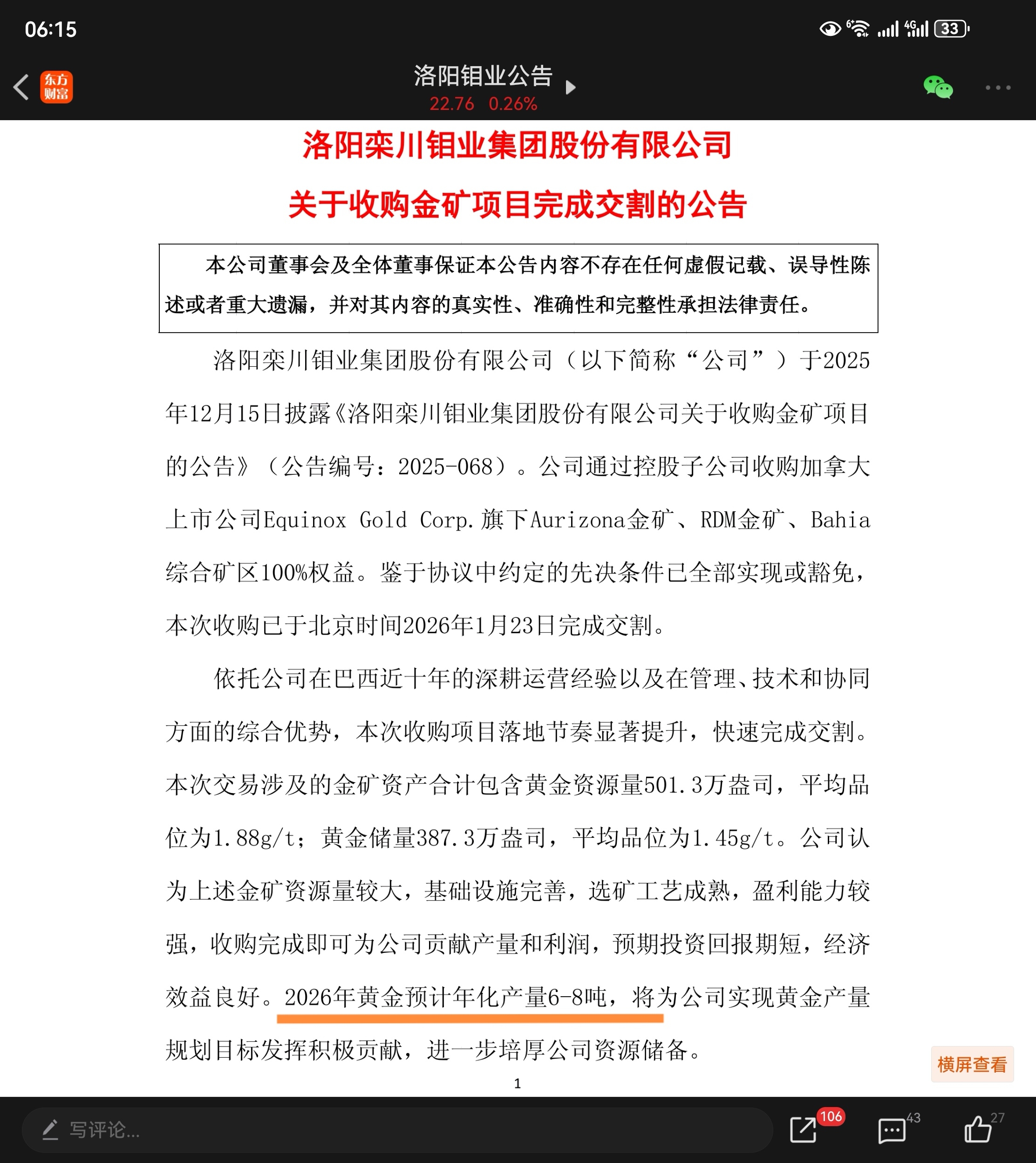$洛阳钼业(SH603993)$ 收购金矿完成。金、铜、银、钼、钨、开始齐头并进……$COMEX白银(COMEX|SI00Y)$ $白银有色(SH601212)$