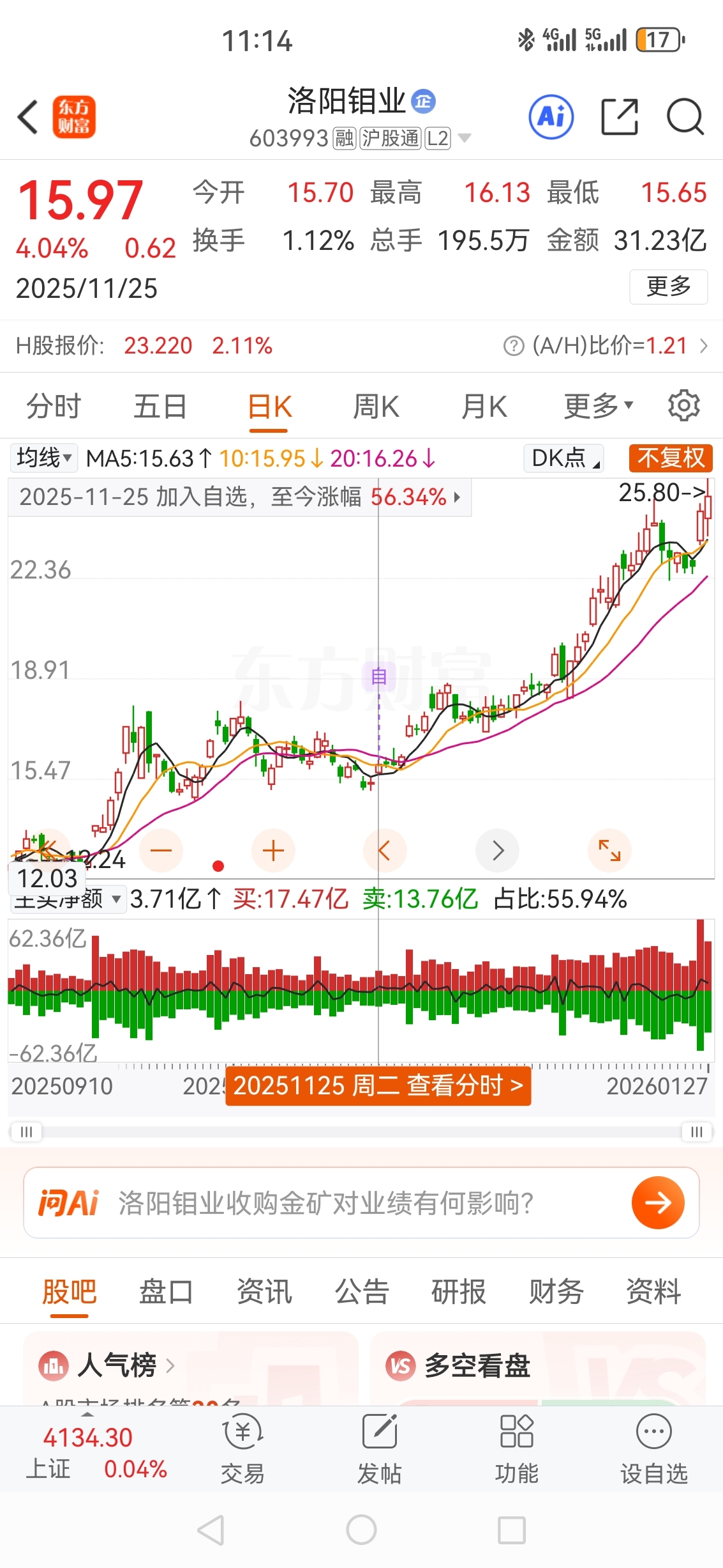 $洛阳钼业(SH603993)$ 好票,15块加入自选,