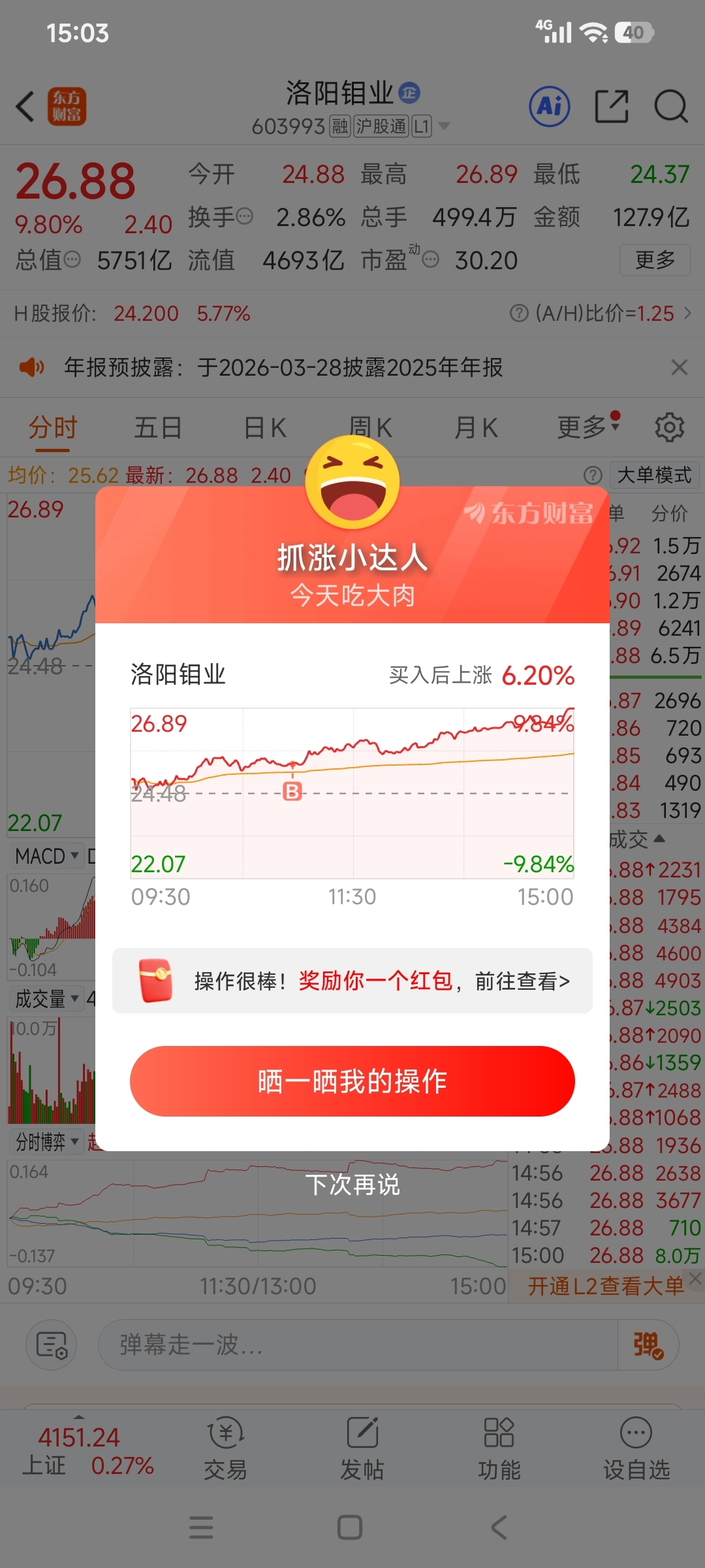 $洛阳钼业(SH603993)$ 上午把行业航天、AI、cpo、能源全部转过来,从亏一千到盈利三千,太不容易了