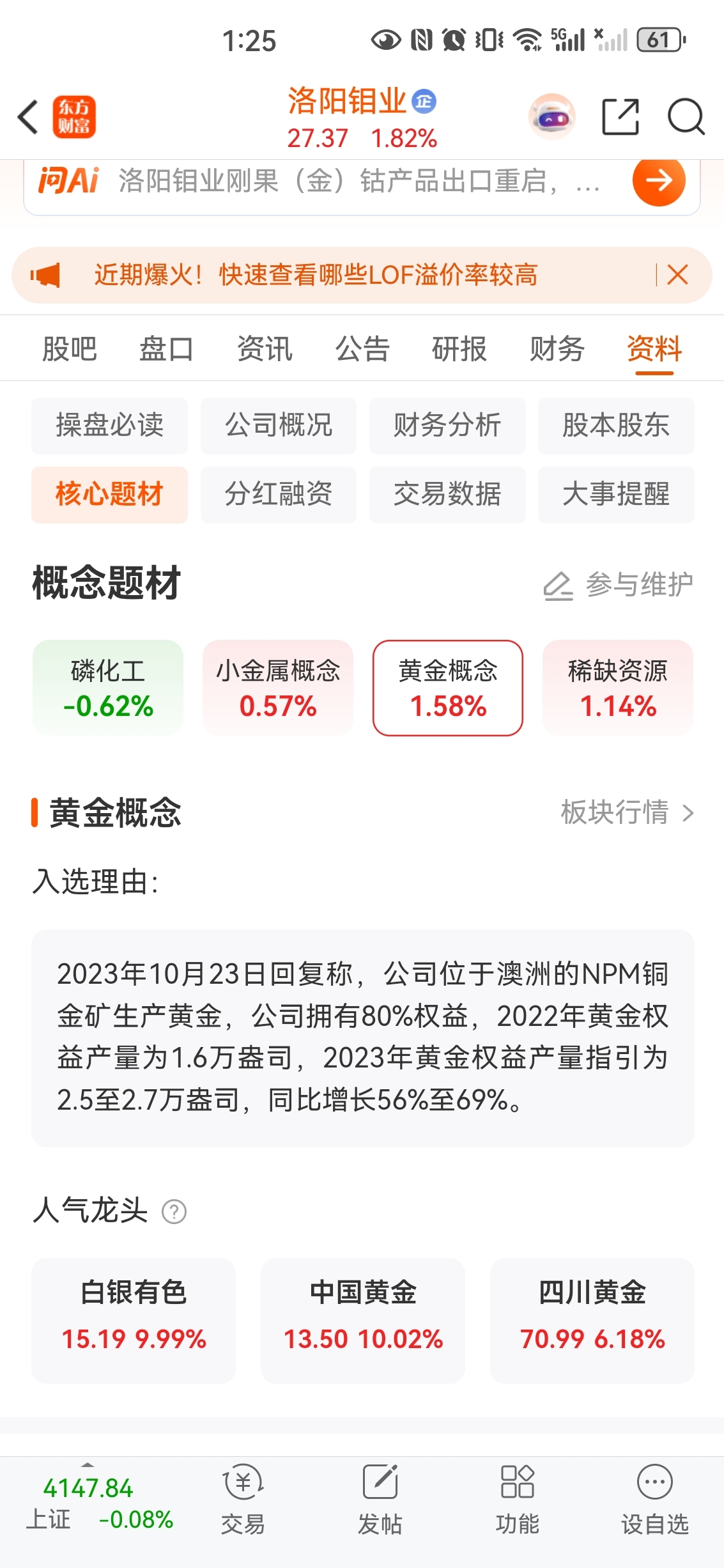 这么正宗的黄金概念,稀缺资源,自己化工提炼,咋就跟不上大部队呢