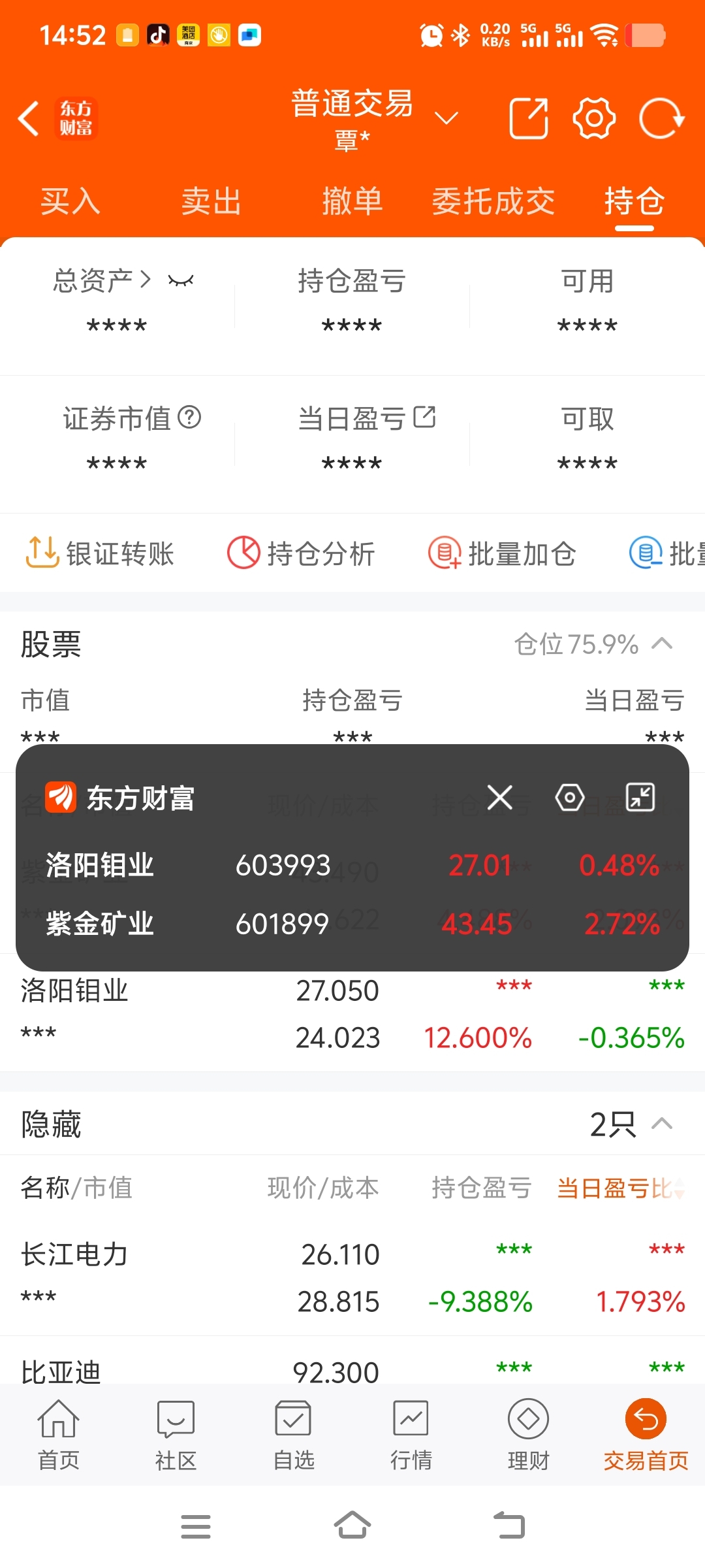 $洛阳钼业(SH603993)$ 一顿操作,高买低卖,红色收盘的被我干绿了