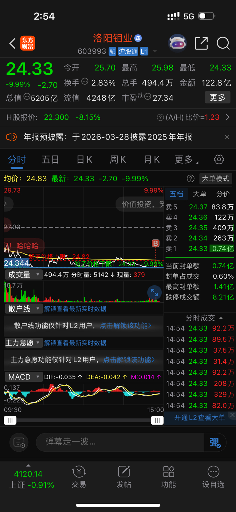 $洛阳钼业(SH603993)$ 锁仓 10月份我再打开软件来看 。 这段时间把我玩累了 卸载软件了 。