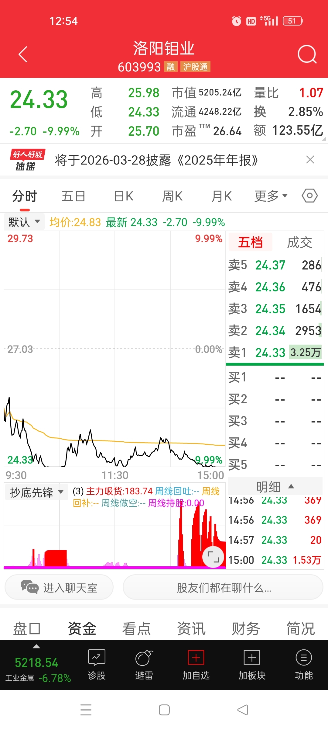 $洛阳钼业(SH603993)$ 主力在借板块情绪杀打压吸筹