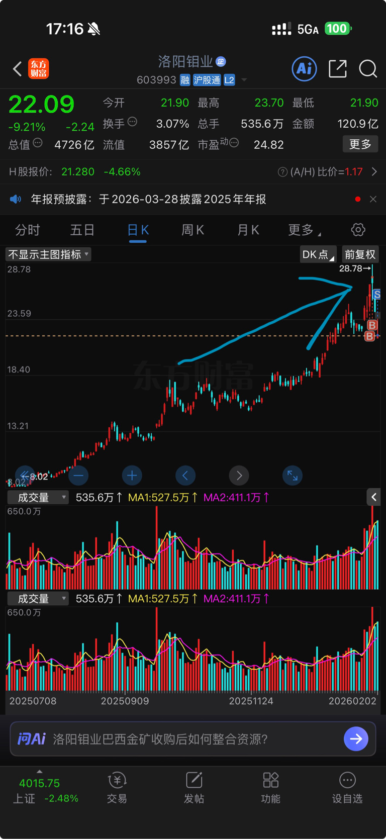 $洛阳钼业(SH603993)$ 是我害了大家 进场了