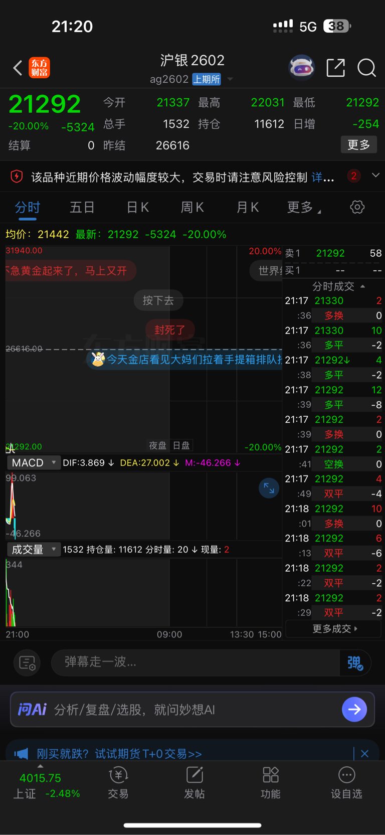 国际做多,我们做空,明天直接一字跌停!