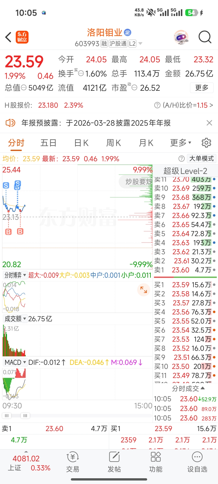 $洛阳钼业(SH603993)$ 很漂亮的两个t点了