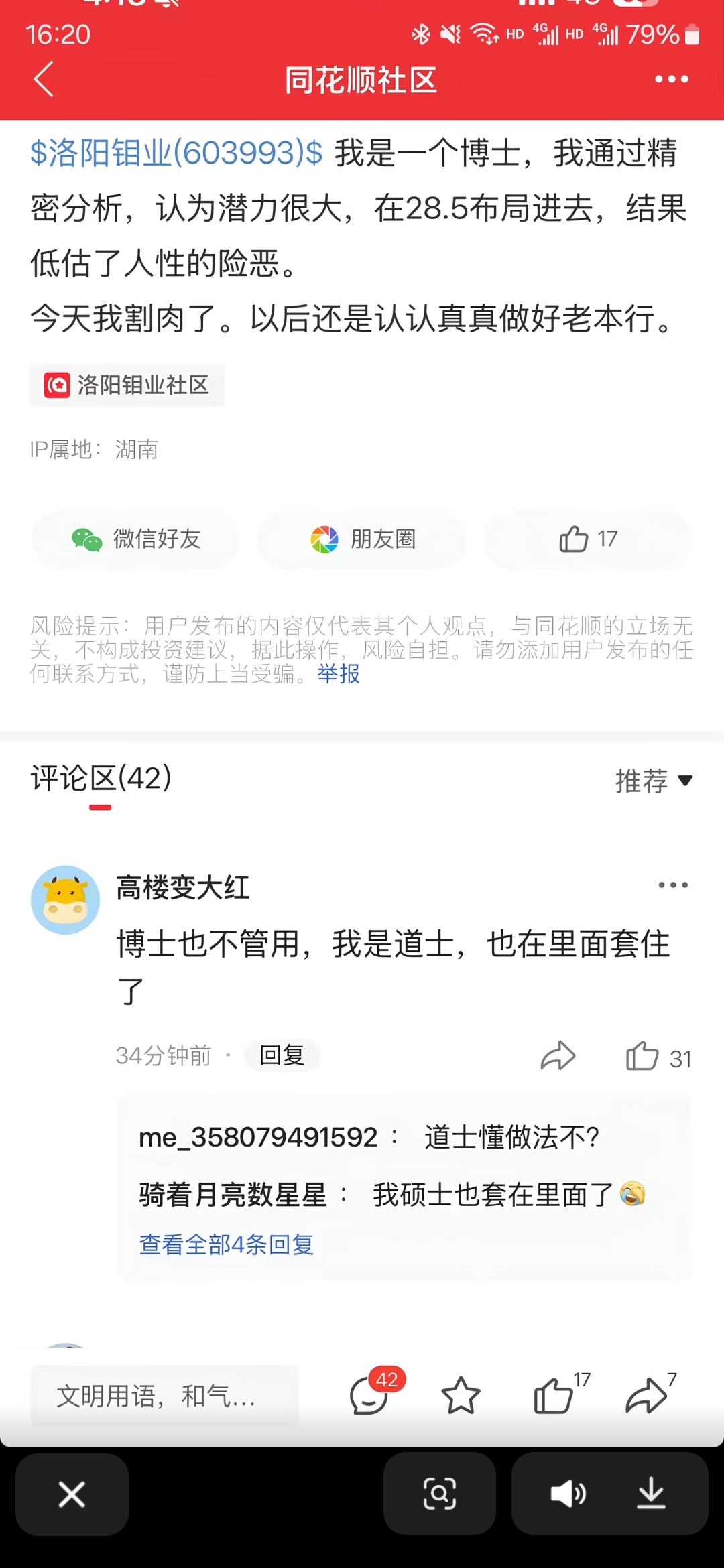 温馨提示: 1.根据《证券法》规定,禁止编造、传播虚假信息或者误导性信息,扰乱证券市场;2.用户在本社区发表的所有资料、言论等仅代表个人观点,与本网站立场无关,不对您构成任何投资建议。用户应基于自己的独立判断,自行决定证券投资并承担相应风险。《东方财富社区管理规定》