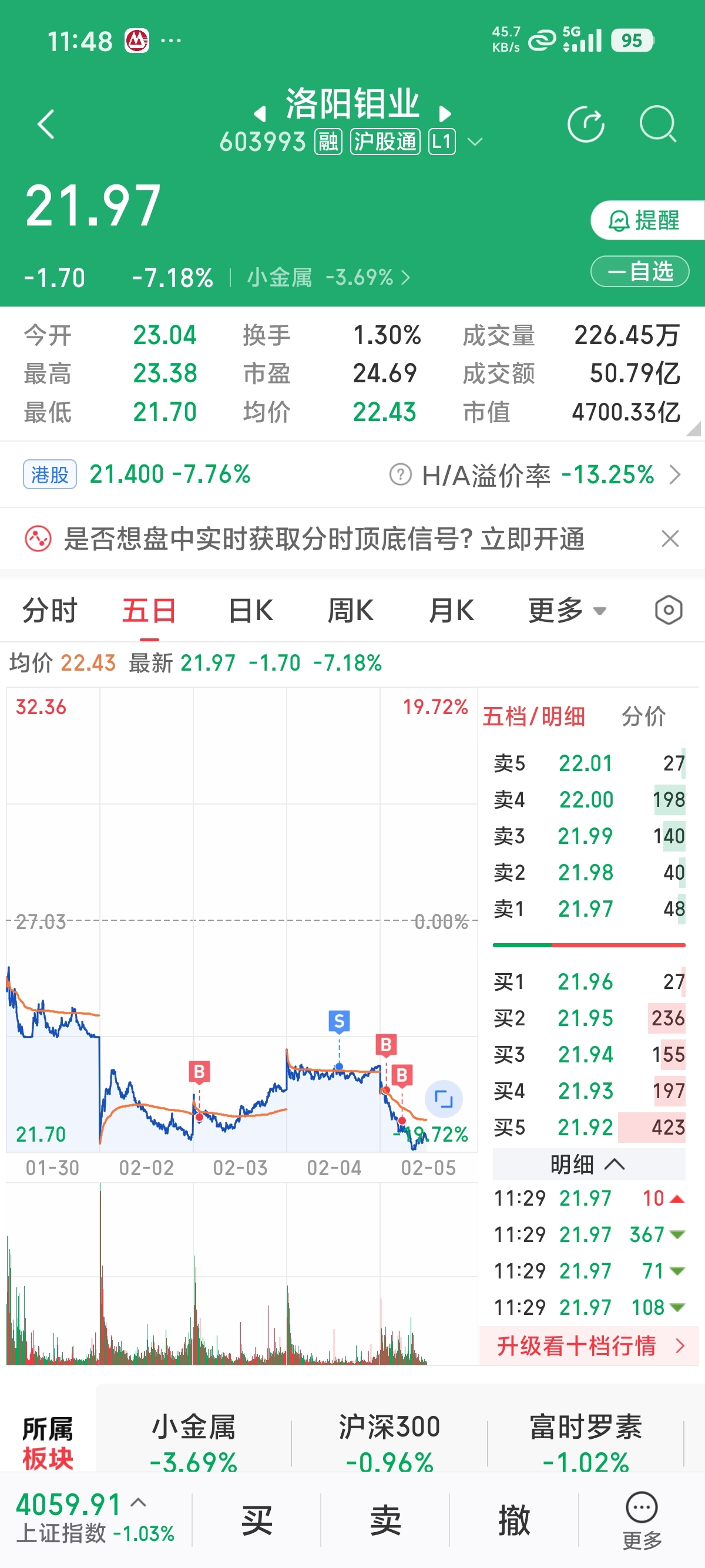 $洛阳钼业(SH603993)$ 昨天S很牛逼 今天B很SB