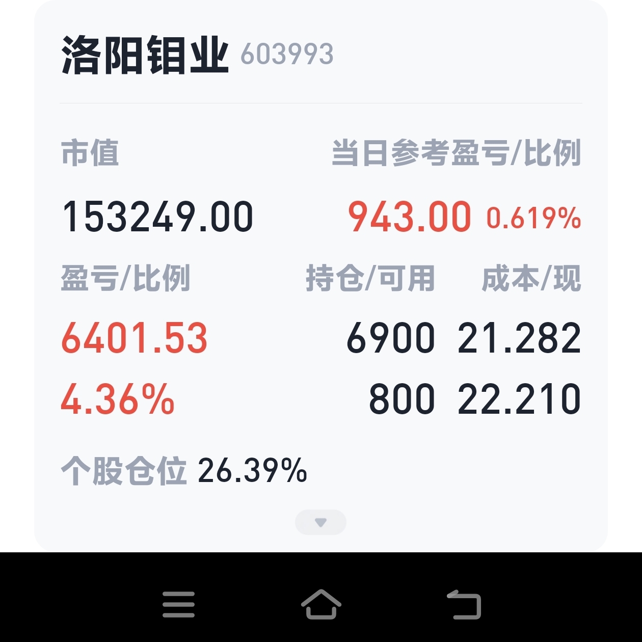 $洛阳钼业(SH603993)$ 26年业绩持续增长,今天涨幅不及预期,坚决加仓