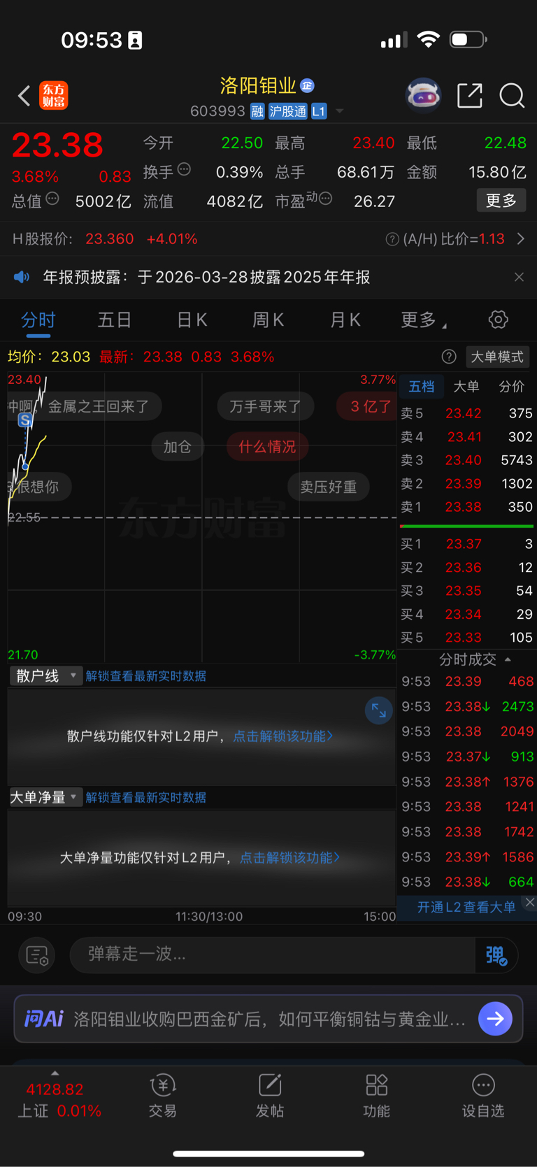 $洛阳钼业(SH603993)$ 我好像个撒子