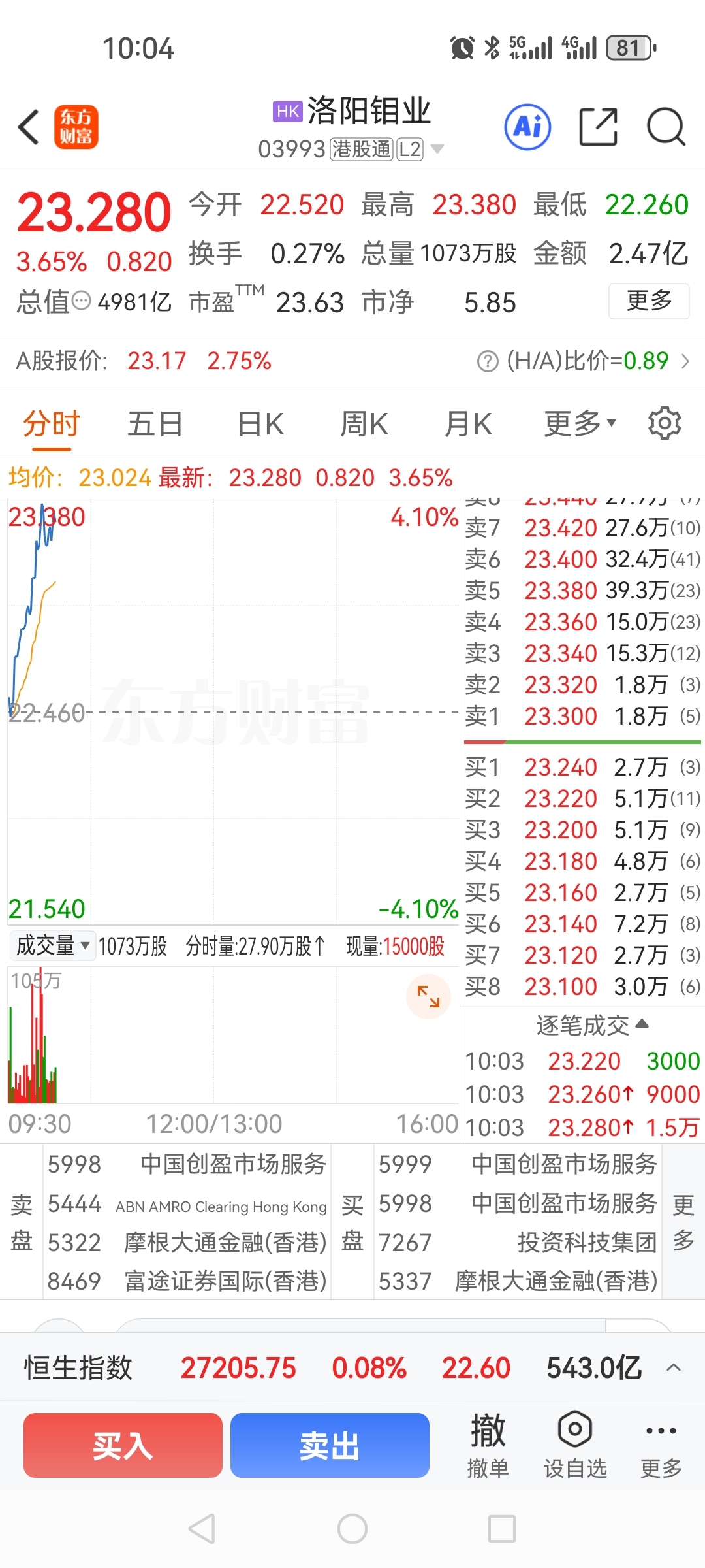 $洛阳钼业(SH603993)$ 港股洛阳钼业今天股价最近一年首次超过A股洛阳可以了,说明A股洛阳钼业被严重低估