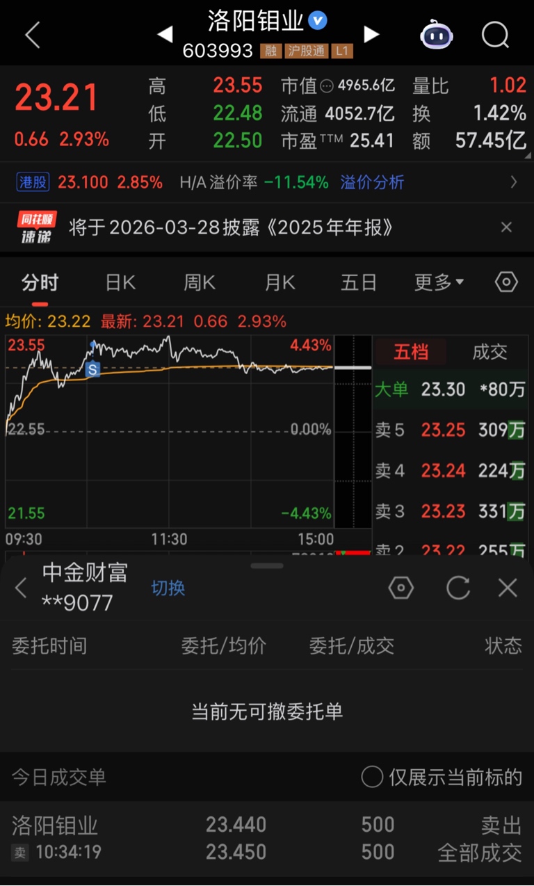 $洛阳钼业(SH603993)$  看了4天,今天下手了,哈哈哈。