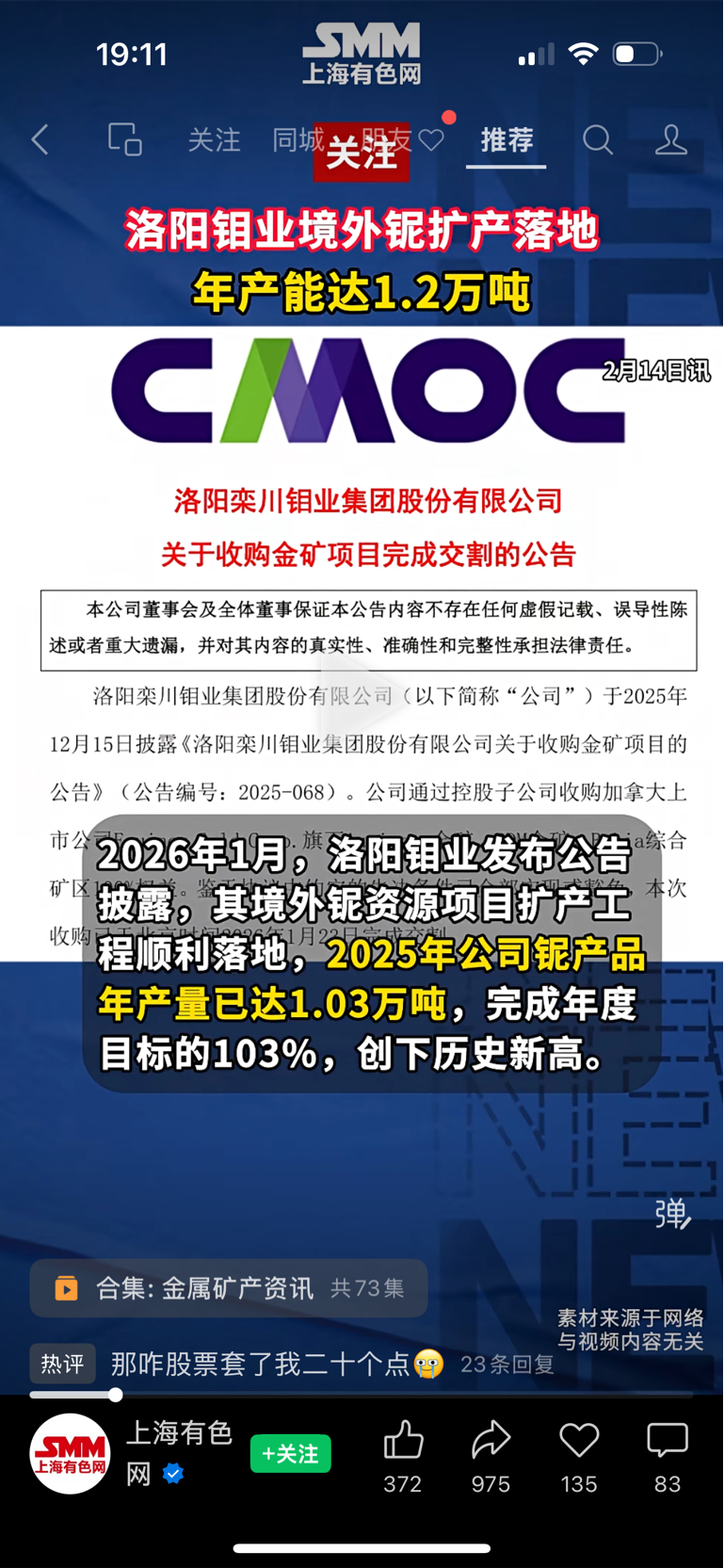 $洛阳钼业(SH603993)$