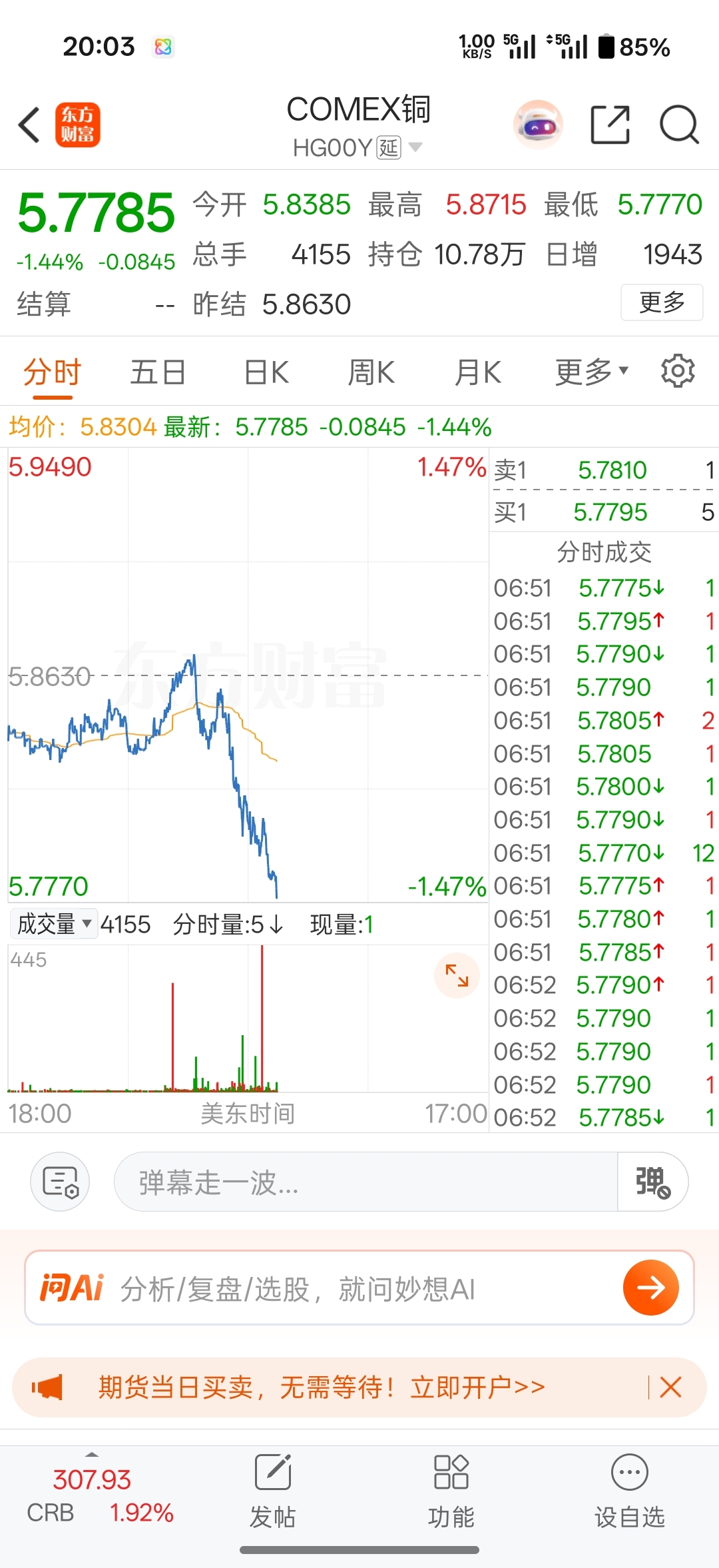 $洛阳钼业(SH603993)$ 感觉很不好 这就是控盘在5.5-5.9之间。就等大A开盘。虽然一直在唱空。但这要是开盘来一刀在5.4-4.9这还得几个跌停板。唯一的小道消息是现货金属要加价买 不然要排队。。但不知真实性。依旧看空。学生和苦命打工人冷静。赌狗随便梭哈。梭哈是一种智慧。