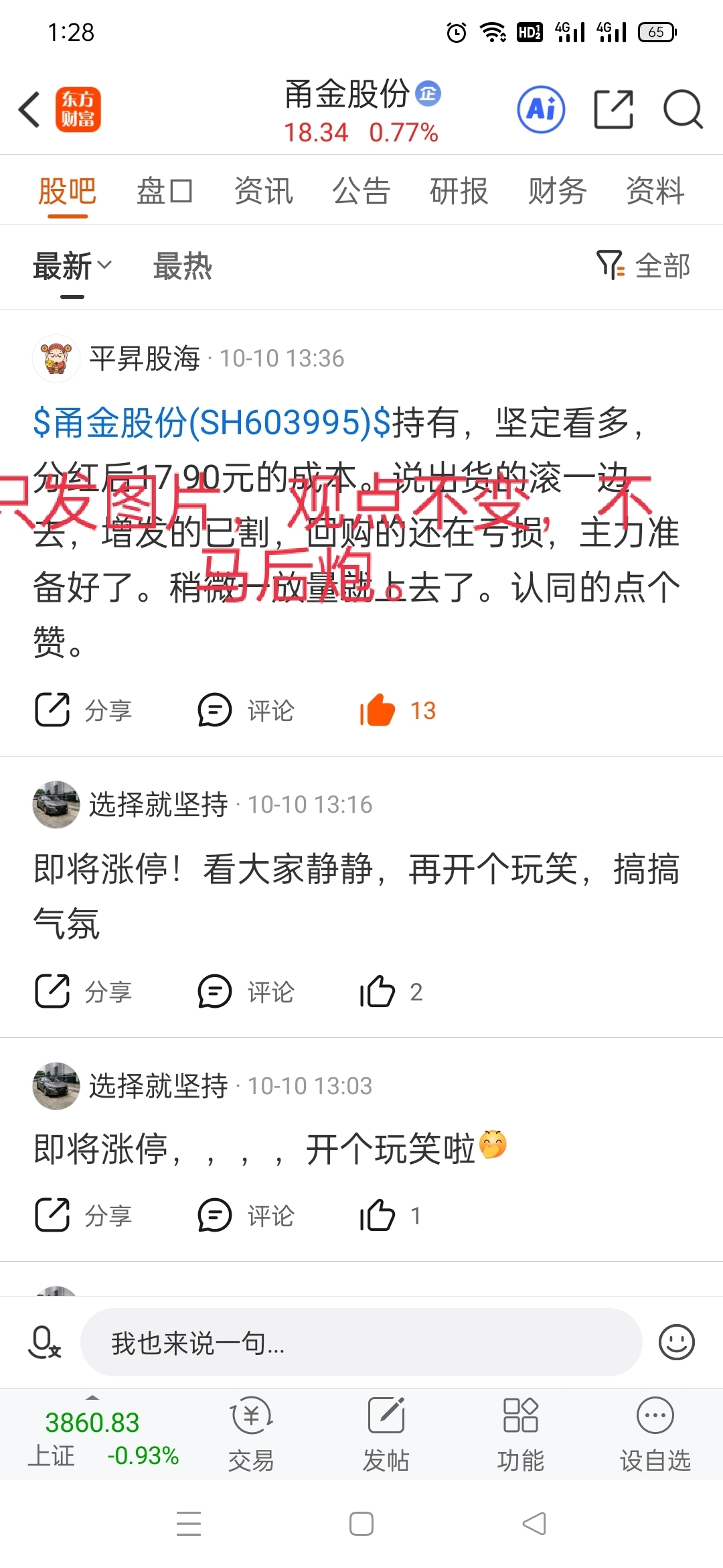 温馨提示: 1.根据《证券法》规定,禁止编造、传播虚假信息或者误导性信息,扰乱证券市场;2.用户在本社区发表的所有资料、言论等仅代表个人观点,与本网站立场无关,不对您构成任何投资建议。用户应基于自己的独立判断,自行决定证券投资并承担相应风险。《东方财富社区管理规定》