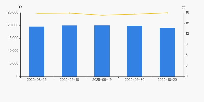 2025年8月29日至今,公司股东户数有所下降,区间跌幅为2.65%。2025年8月29日至2025年10月20日区间股价上涨0.85%。