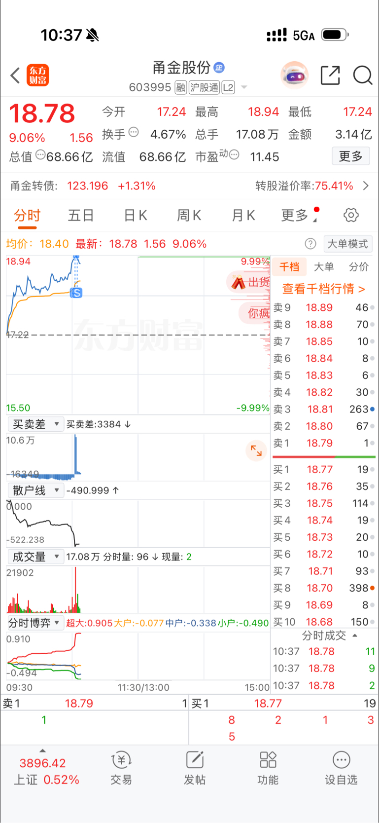 $甬金股份(SH603995)$ 开板前赶紧清仓了,跌回来接