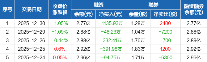 甬金股份:连续6日融资净偿还累计2508.02万元(12-30)