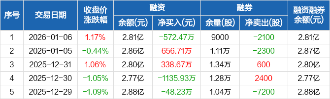 甬金股份:融资净偿还572.47万元,融资余额2.81亿元(01-06)
