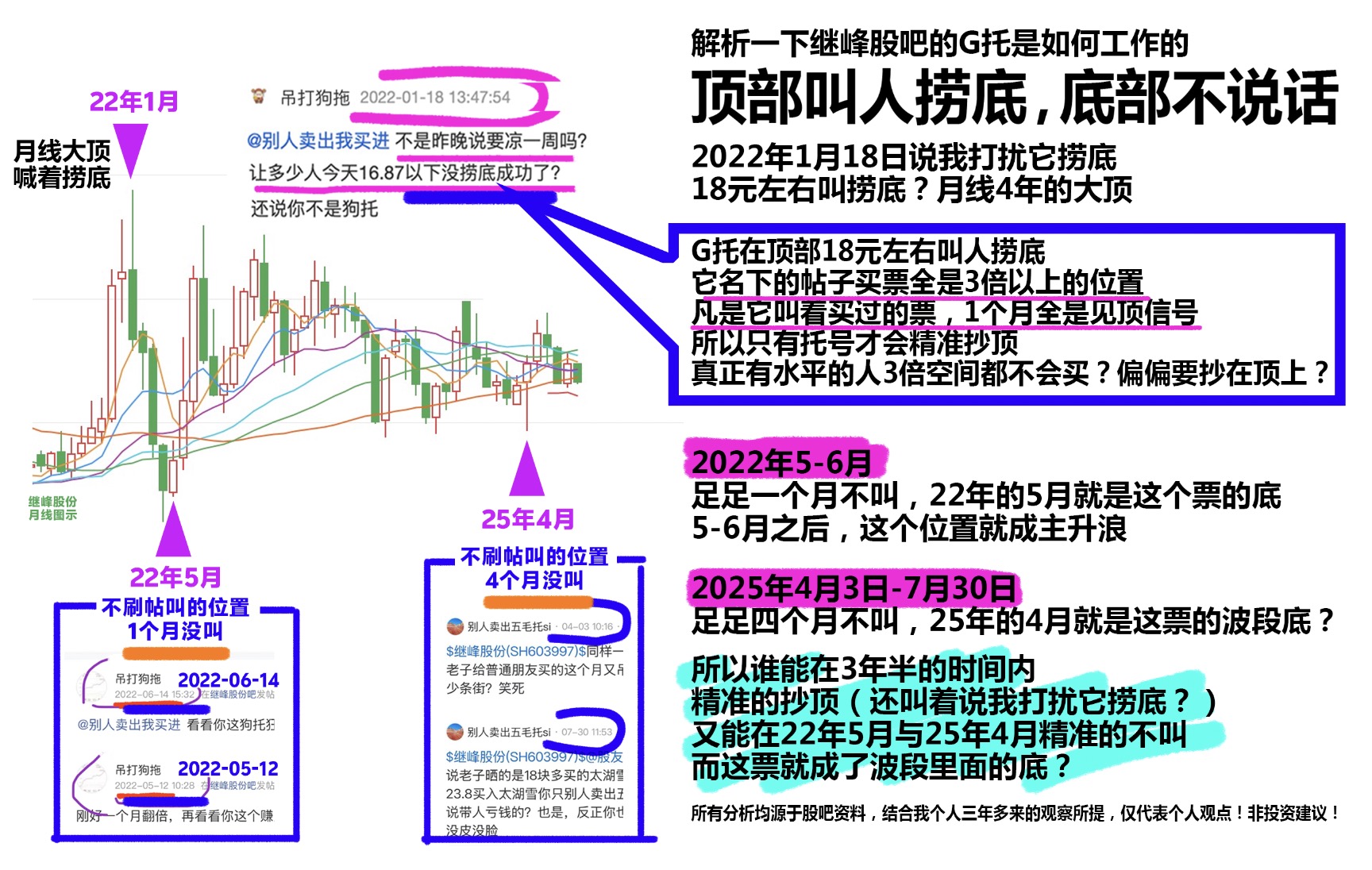 所以某些G天天叫,实际上则是真正的股吧G托,顶部叫人捞底,2次底部,它一个帖子都