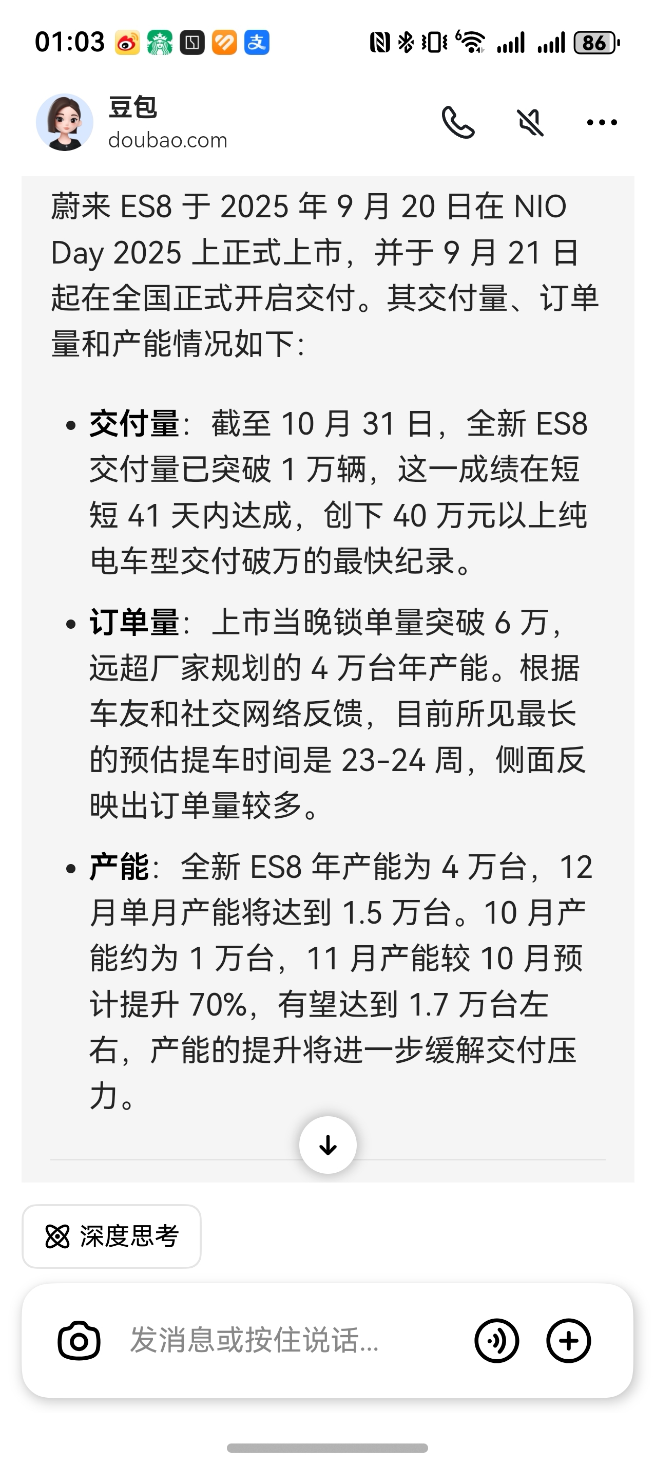 $继峰股份(SH603997)$ 4季度到明年一季度业绩是有保障的,下游主机厂的两款爆款车出货量在爬升阶段,集中在4季度。而且都是该价位卡位的车型。稳定出货量接近4万台每月,蔚来的Es 8和理想的I6..3997业绩明年再8-10亿之间27年稳定在12+亿那市值有望到250亿左右。