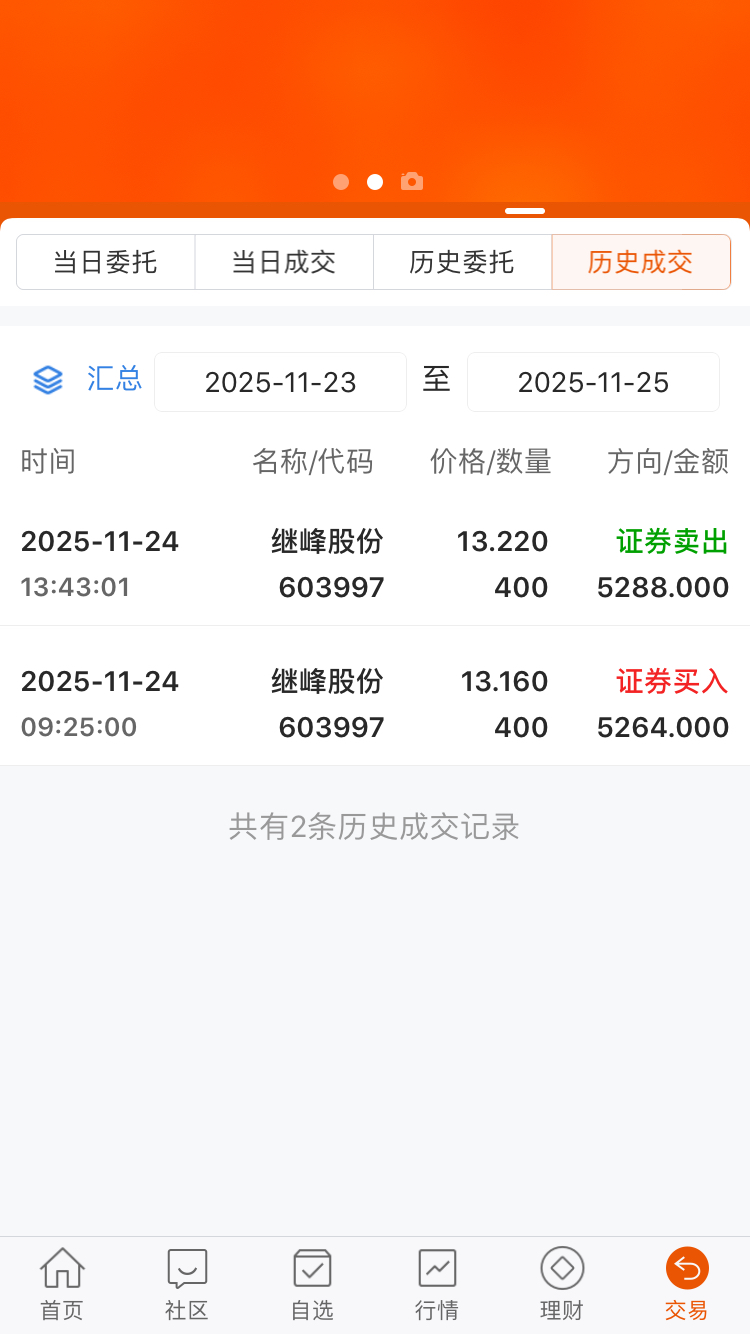 $继峰股份(SH603997)$ 明天12.98元挂单买入400股,周四日盘冲高卖出,不要求赚钱,只为带新股民练练手,继峰股份这票是程序托管的,没有操盘手值守,所以更要加强练习,克服对电脑程序量化交易的恐惧。以下图片为日内做T,变相丅+0交易模式,风险当日可控,也可日内收割,现在是实盘练习,快进快出,反复循环操作。