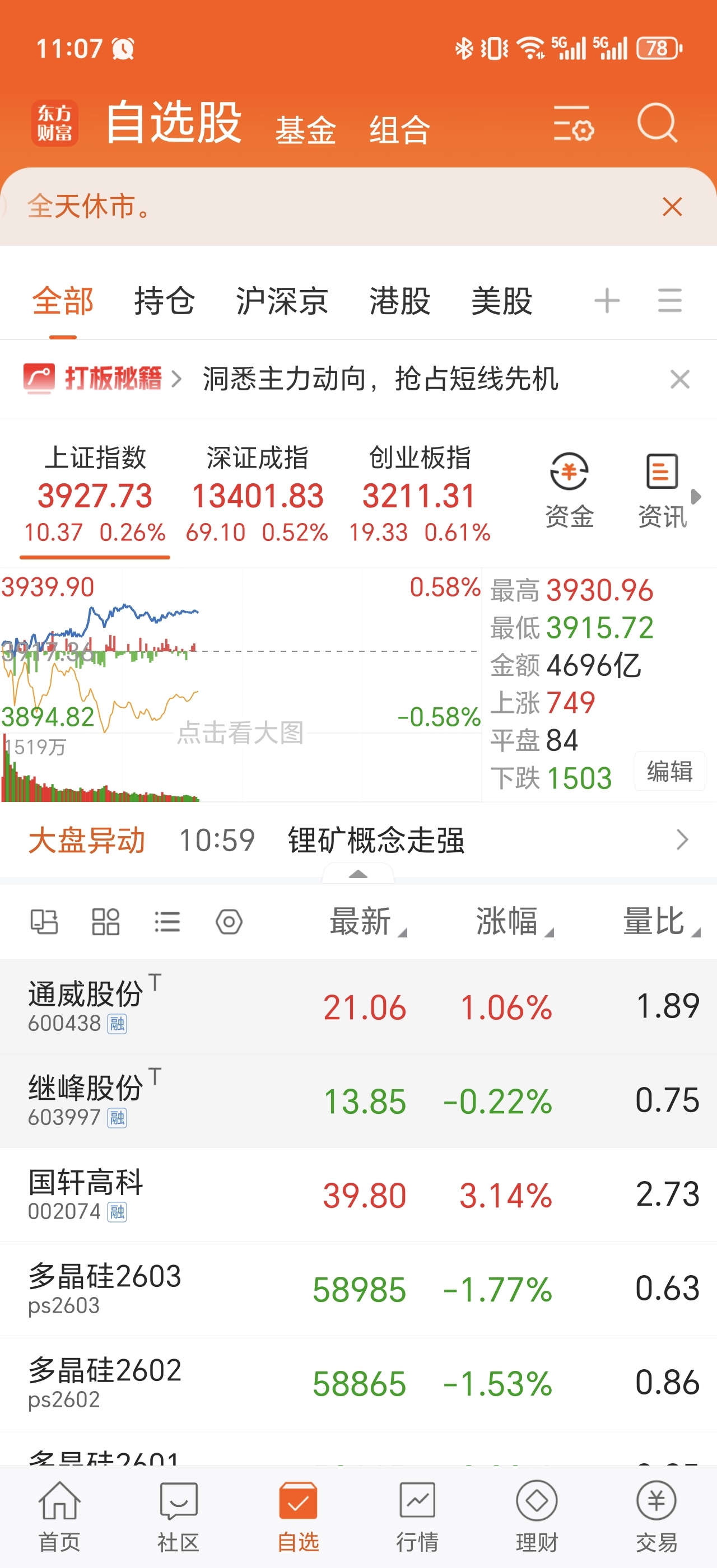 就连通威这么弱的都起来了,你还躺着最近一段时间出差没多少时间一直盯盘,就这么放着
