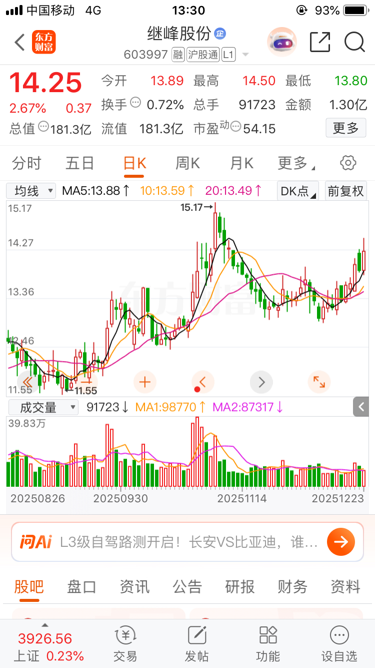 $继峰股份(SH603997)$ 默默关注那个14.60元6000手大户还在不在,加油!还差1角保本,再给多5分的手续费即可全身而退,我倒看看会否砸单。我只看热闹,我不买,我没兴趣。祝各位发财。