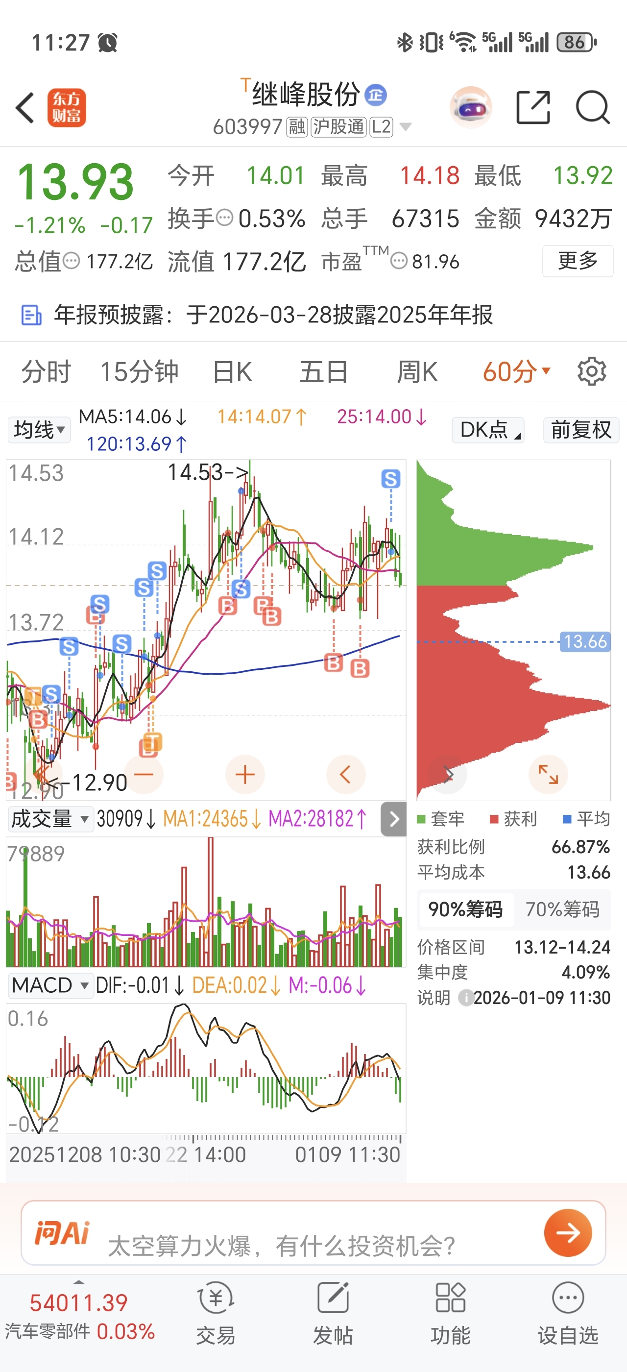 $继峰股份(SH603997)$ 13.8等你一笔,下来不?
