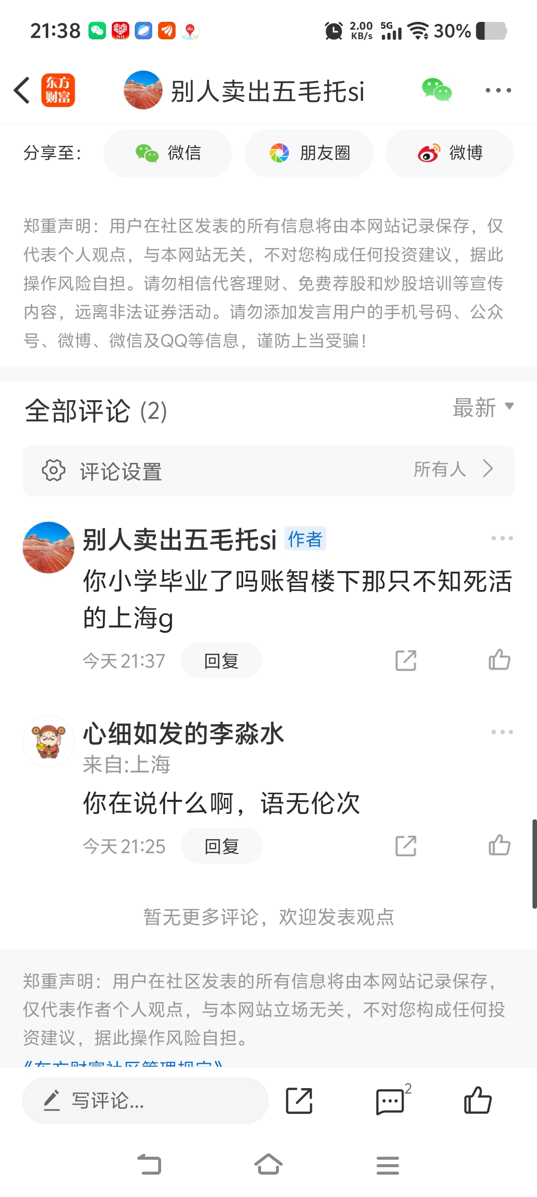 温馨提示: 1.根据《证券法》规定,禁止编造、传播虚假信息或者误导性信息,扰乱证券市场;2.用户在本社区发表的所有资料、言论等仅代表个人观点,与本网站立场无关,不对您构成任何投资建议。用户应基于自己的独立判断,自行决定证券投资并承担相应风险。《东方财富社区管理规定》