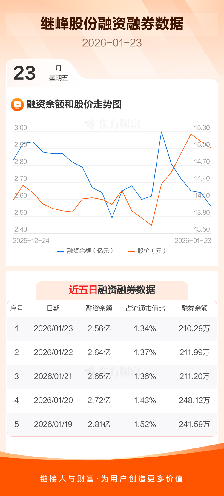 交易所最新数据显示,继峰股份于2026年1月23日获融资买入1442.34万元,融资偿还2191.26万元,当日融资净偿还748.92万元。目前,该股融资余额2.56亿,占流通市值比例为1.34%。