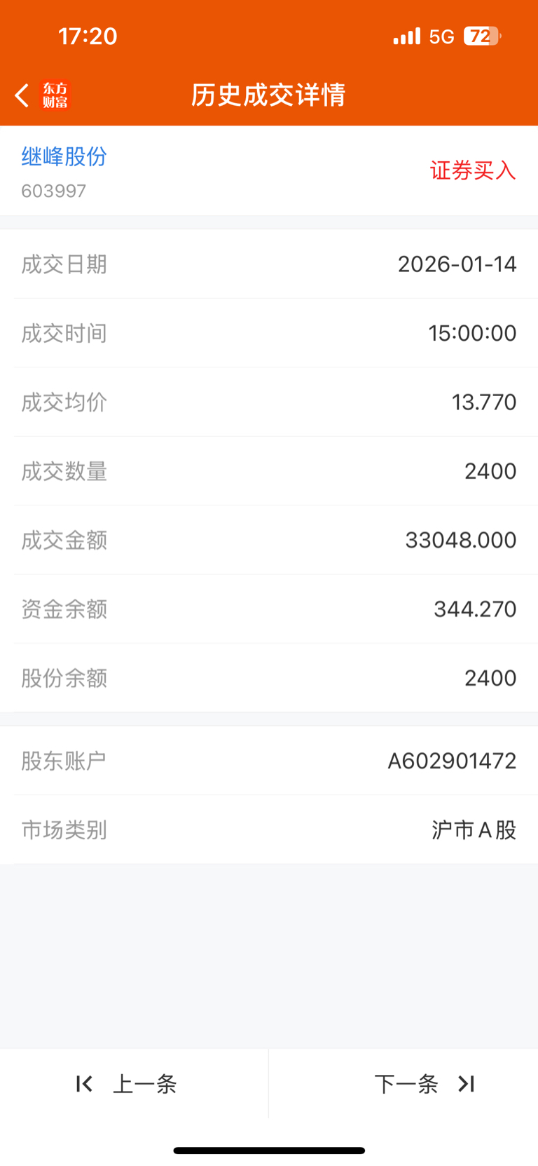 $继峰股份(SH603997)$ 已经成功低价继峰股份,破位向下这几天一直在大量买入,不要问我买了多少钱,反正帐上已经买光余额,早上竞价买,下午竞价也买,看下图,果然,对手盘在13号早盘竞价14.50元被套了三日,今天尾盘拉升自救,我也跟着减仓一半,留半仓防守。这么低的持仓,看你耐我如何。