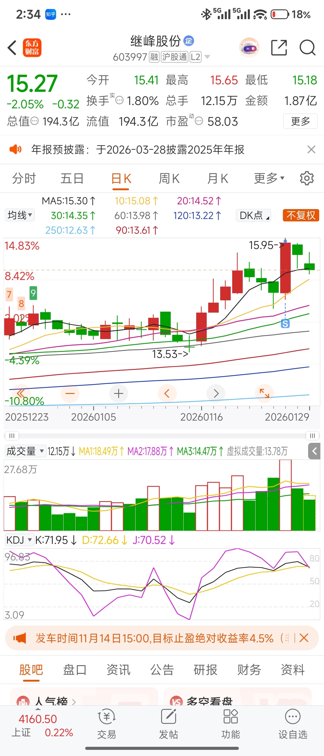 $继峰股份(SH603997)$ 15.05抄底半仓,等你