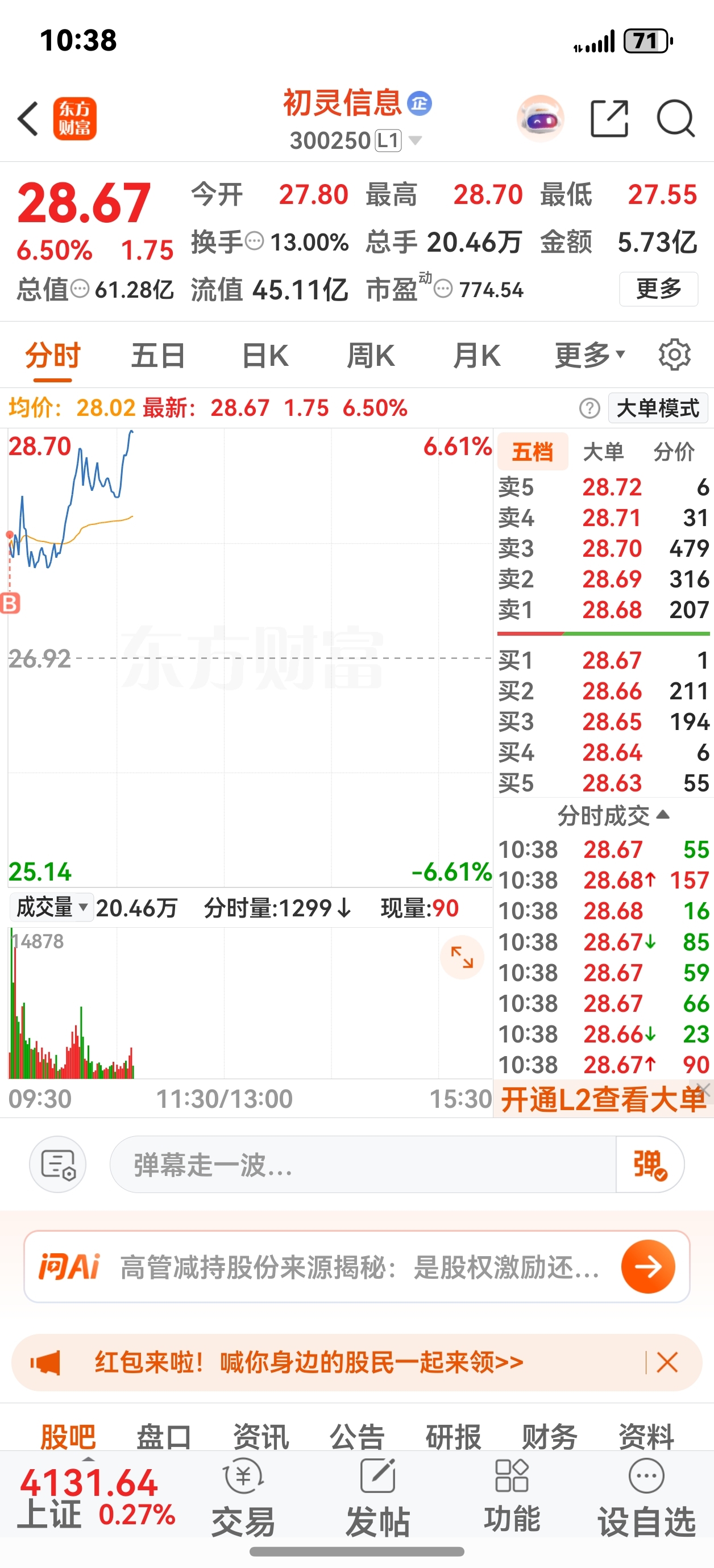 集合竞价割了,直接买了初灵信息,这么大的利空消息,竟然不跑,你们的心真大,明天才