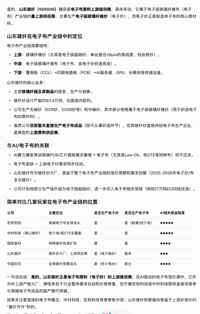 $山东玻纤(SH605006)$ 电子沙,电子布原材料供应商