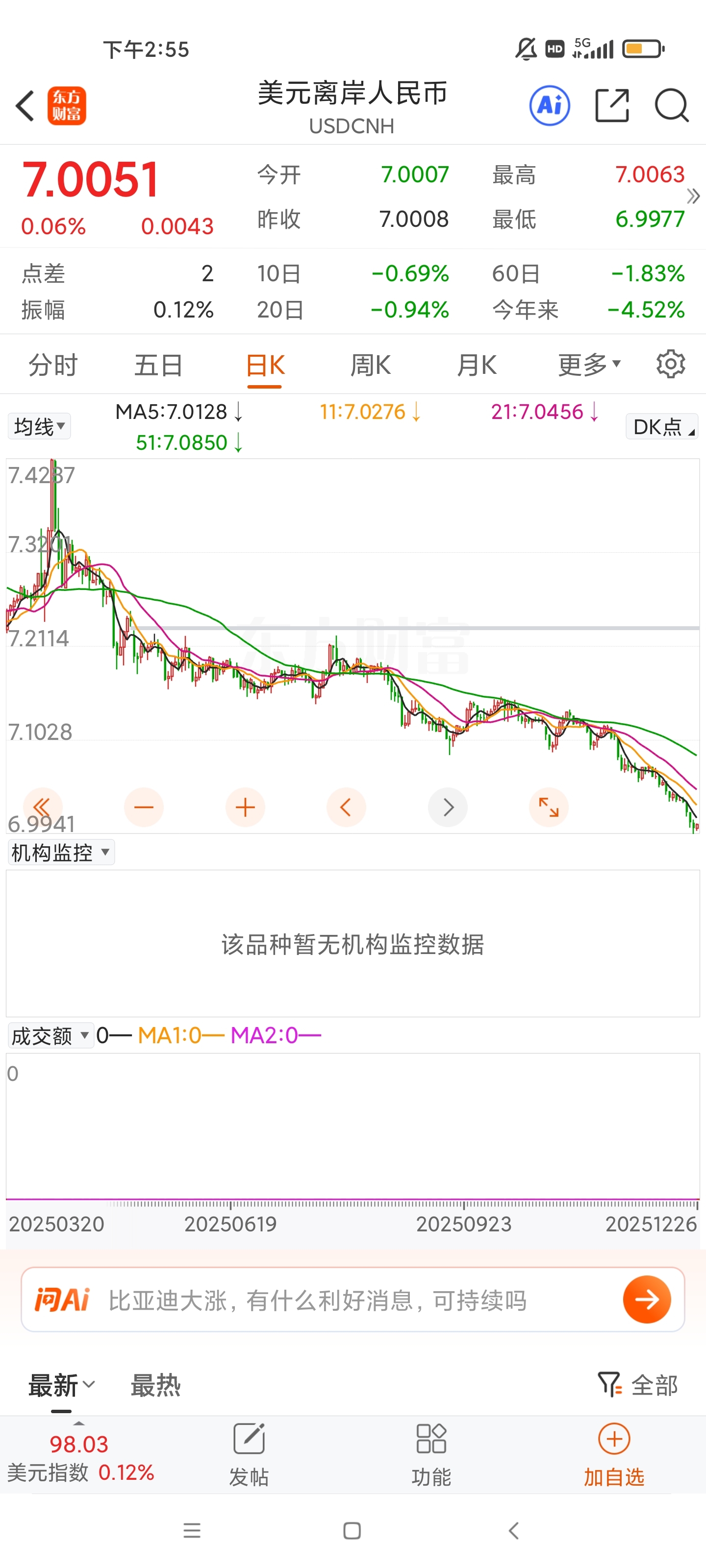 昨天就想上,但是昨天纸太多不知道怎么选今天就简单了只剩你一个,人民币破7是历史性