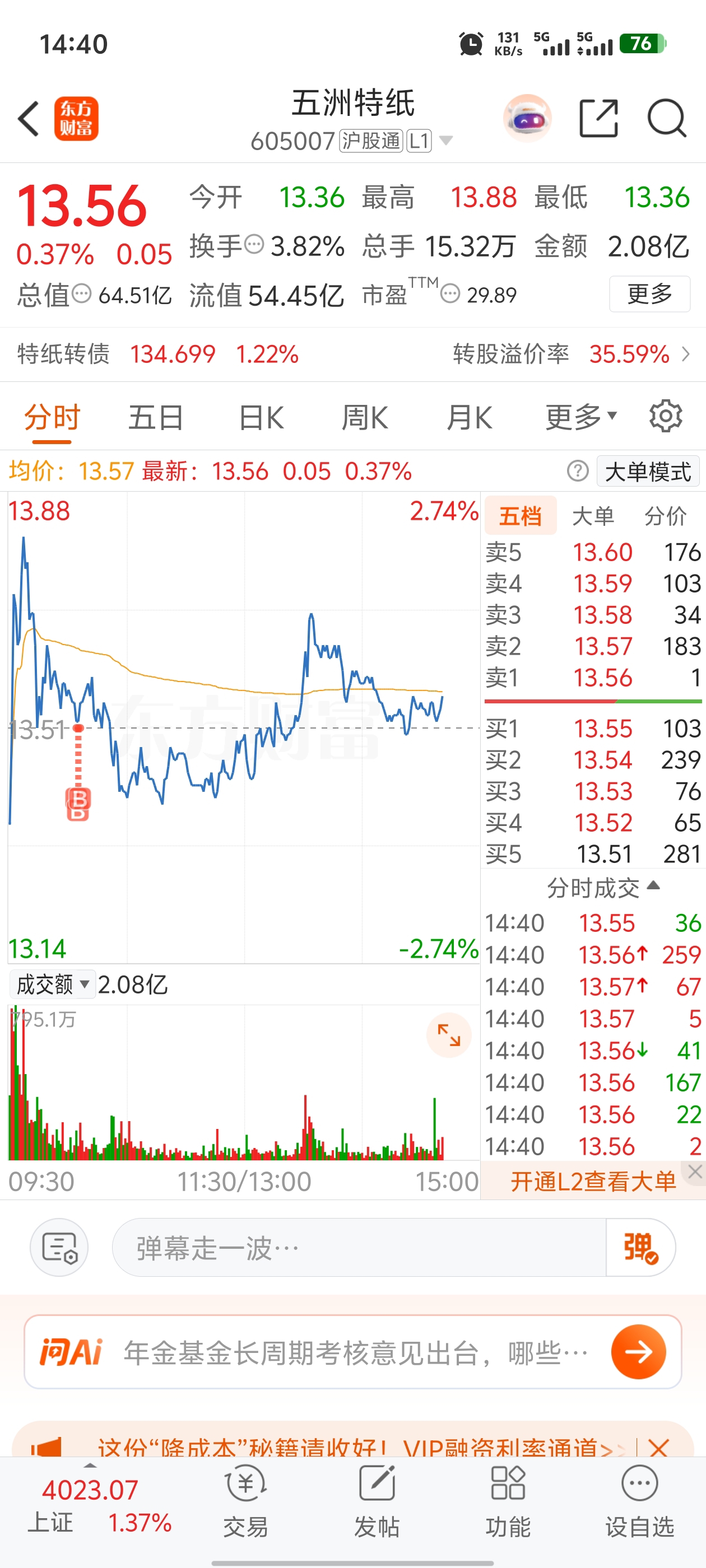 $五洲特纸(SH605007)$ 收盘站上13.60,明天直接启动!