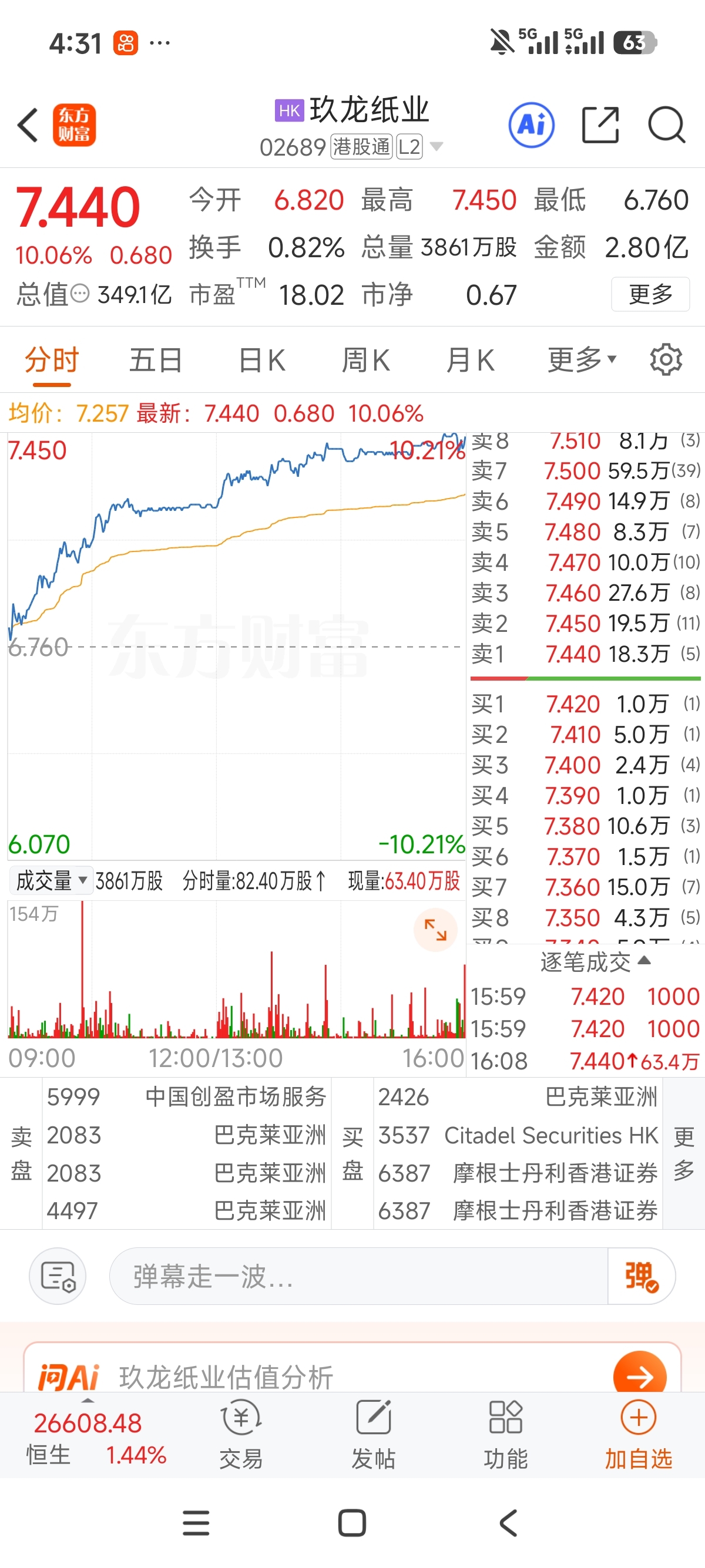 玖龙纸业大涨10个点,明天会不会高开高走,暴力拉升,家人们