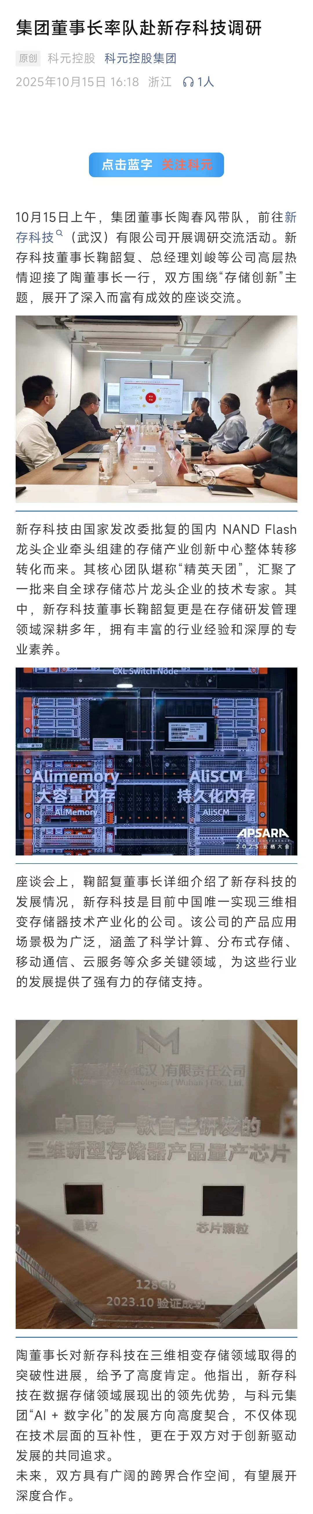 董事长亲自带队去新存科技调研,这种跨界的调研交流还挺有看点的,不知道后续会不会有